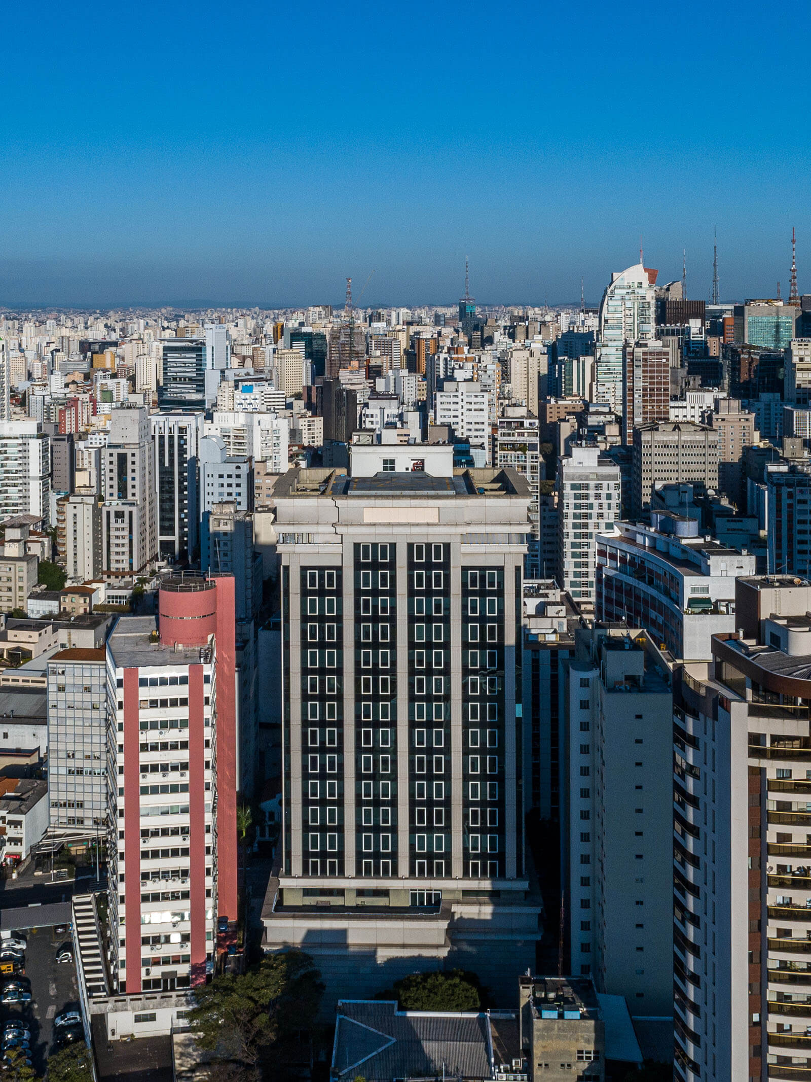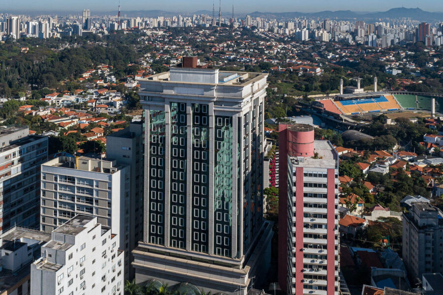 Cada andar corporativo abrange 825 m² de flexibilidade. Oferecem 24 vagas na garagem e um hall social de acesso conjuntos com acabamentos requintados em mármore e granito. O ar-condicionado central com controle individualizado por conjunto, piso elevado, forro modular e vistas panorâmicas para o Pacaembu garantem uma experiência de trabalho confortável e inspiradora.